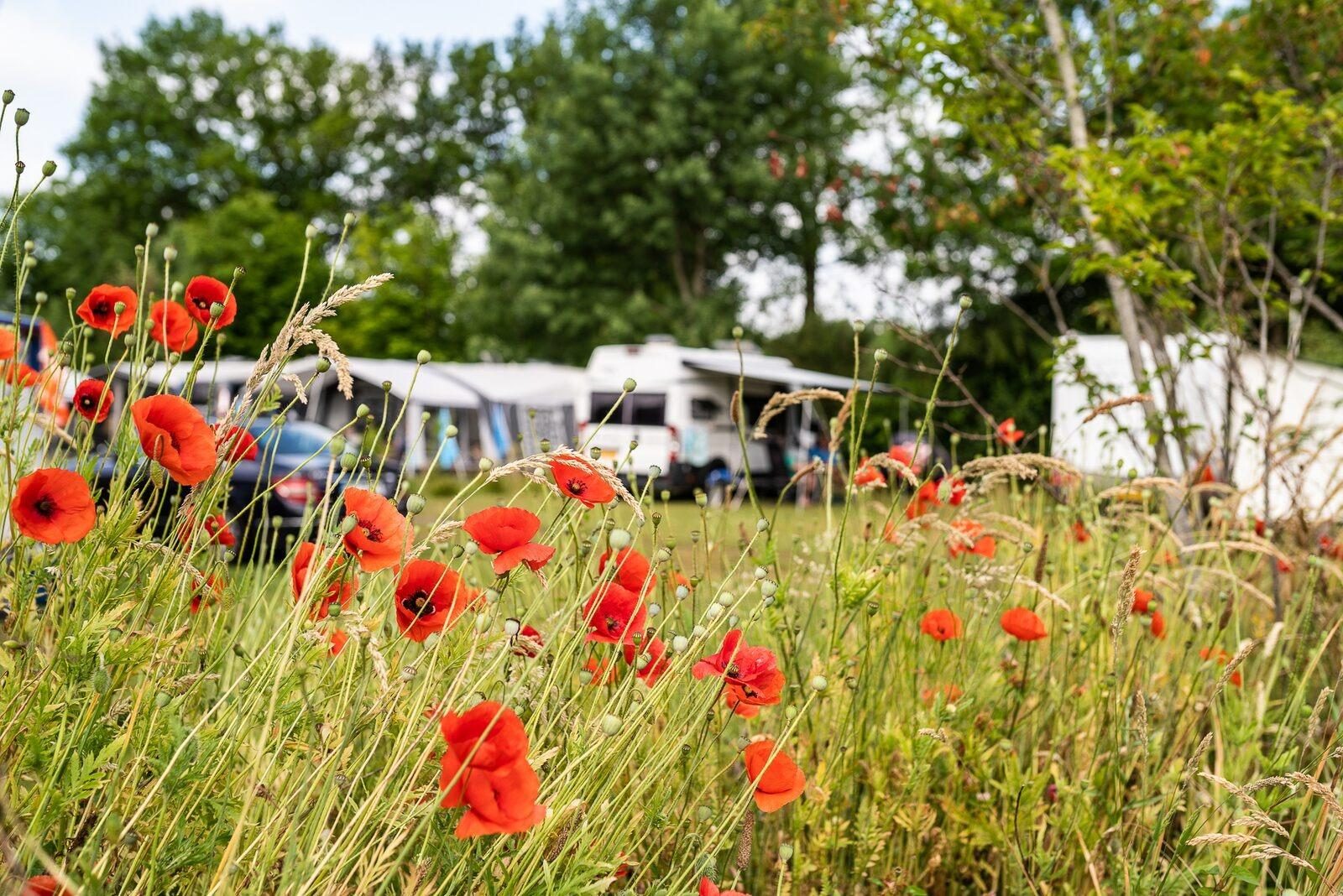 - Ruime kampeerplaatsen van 100m2 tot 140m2 groot,